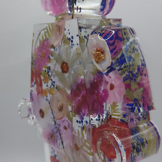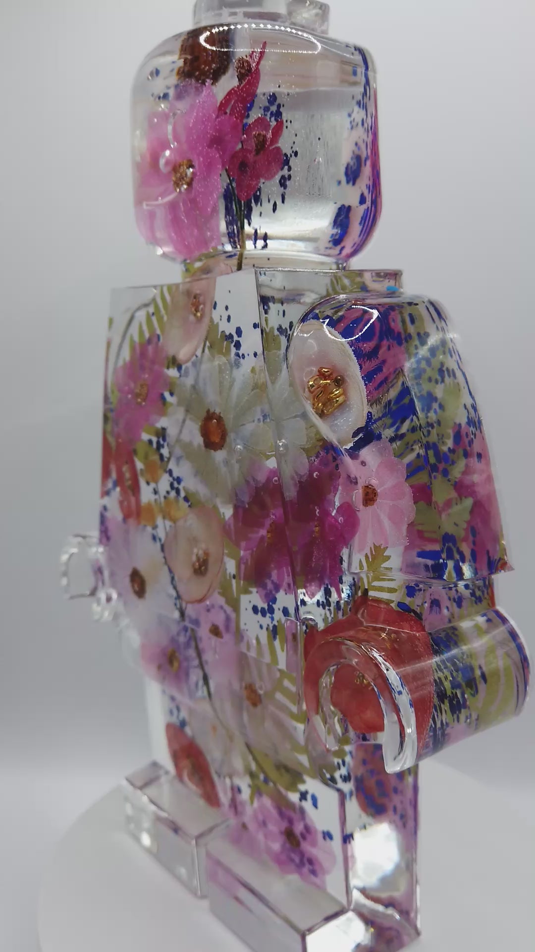 Sold! Resin Figure - 11" Tall - Pink Rose w/ Blue Glitter