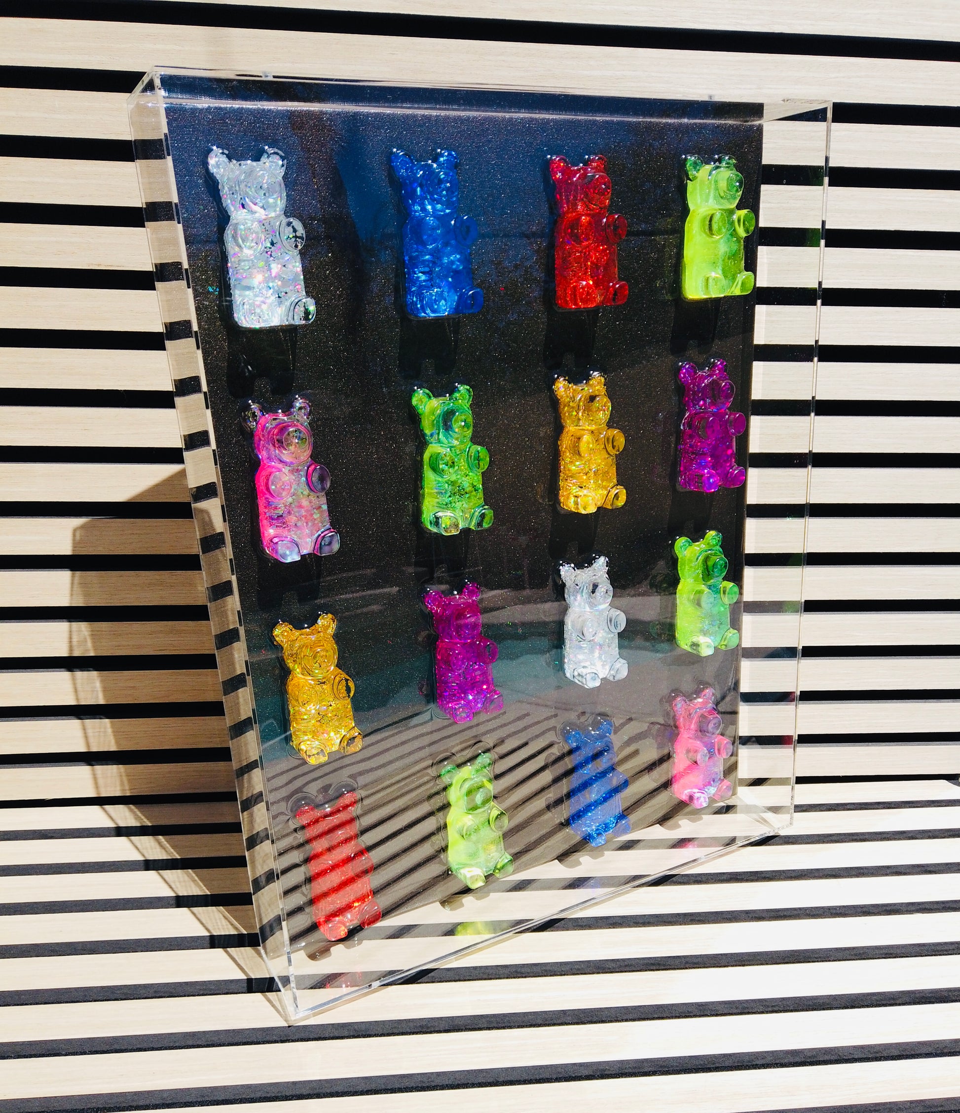 NEW ITEM! (16) 3" Sparkle Bears on 16x20" on resin canvas in acrylic gallery shadow box.
